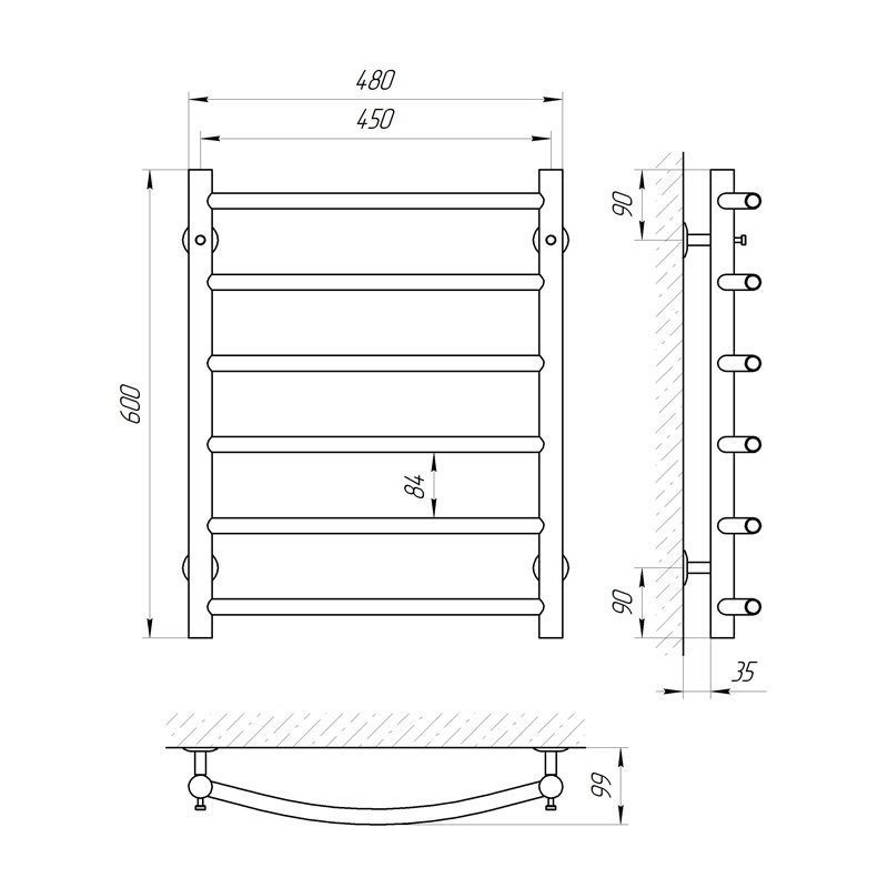 Полотенцесушитель Классик Э П6 480x600мм