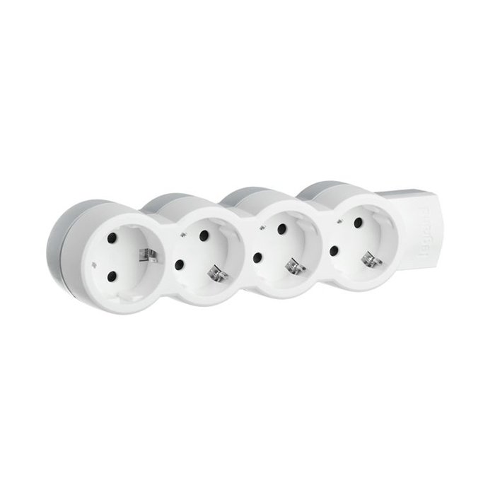 022 268 000Колодка удлинителя 4 розетки с заземлением 695009 - многорозеточный блок "Стандарт". Компактный удлинитель. Есть возможность крепления к стене. Ультраплоская форма позволяет его устанавливать под мебелью. Одна розетка повернута на 90 градусов для удобства подключения зарядных устройств, остальные повернуты на 45 градусов. Максимальная мощность нагрузки 3500 Вт.