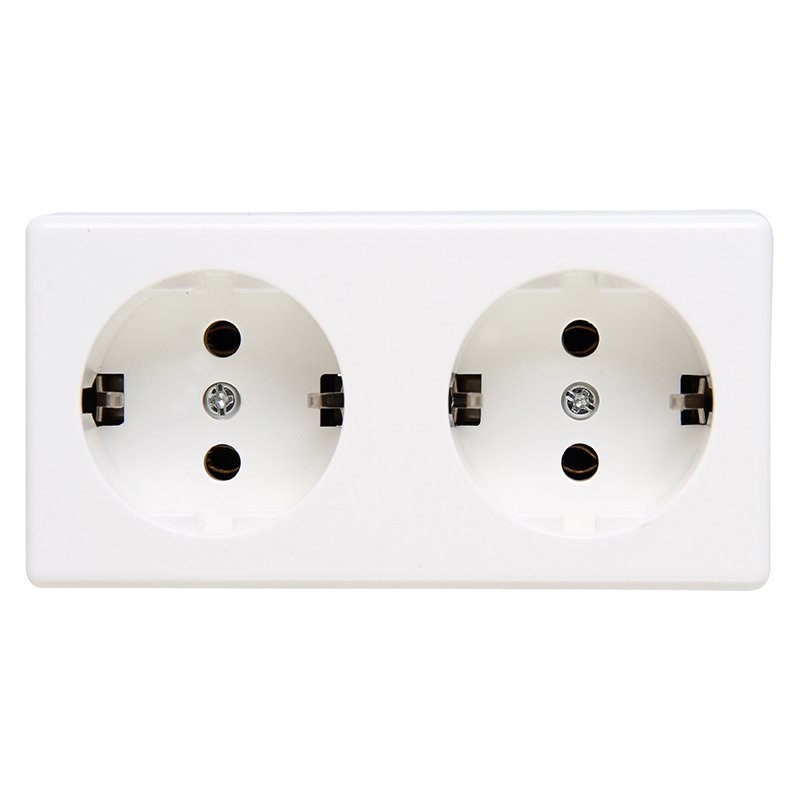 Розетка двойная с заземлением продается в комплекте с рамкой.