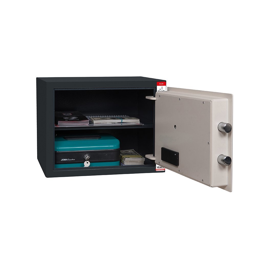Сейф S.25 Е 250х350х260мм – оптимальный и надежный вариант изделий для хранения ценностей и документации в любом доме и учреждении. В перечне основных преимуществ : толщина двери 3 мм, толщина корпуса 3 мм, сейфы оборудованы парой стальных ригелей, съемной полкой, ключевым или кодовым замком