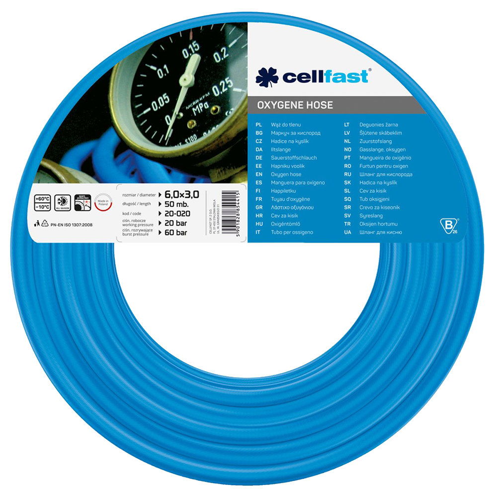 Шланг для кислорода 6х3мм Cellfast 20-020