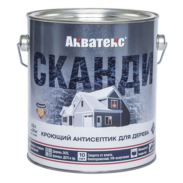 022 268 000Сканди кроющий антисептик для древесины - защита древесины от воздействия влаги, появления и распространения биопоражений (гниения, плесени, грибка, синевы), УФ-излучения (потемнения, выгорания) и других атмосферных воздействий.Обновление деревянных поверхностей, ранее окрашенных алкидными или акриловыми составами, в том числе темных тонов.