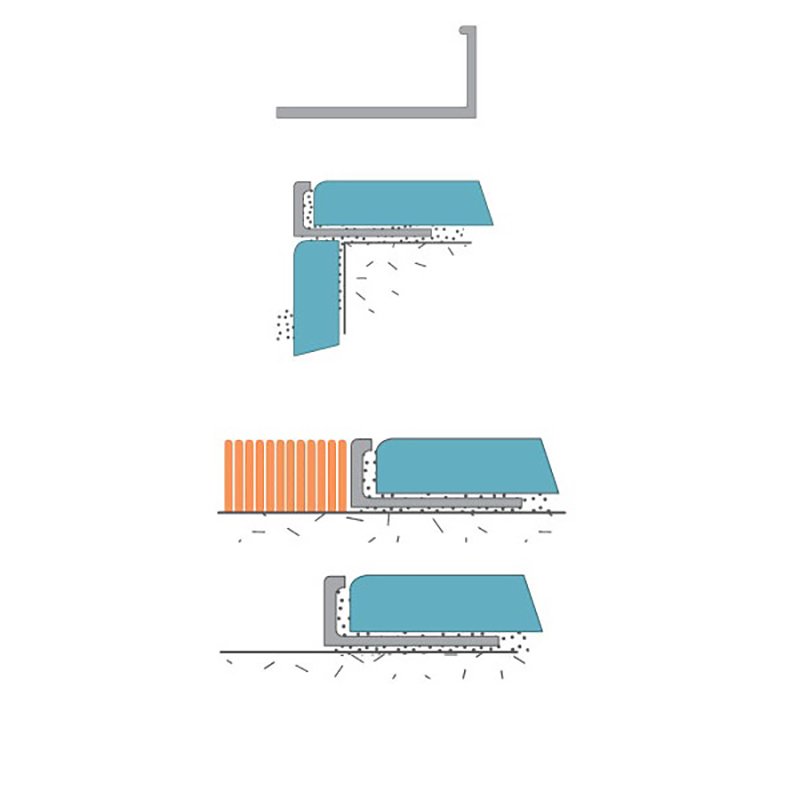 022 268 000Угловой профиль L для плитки серебристый матовый 2500x12.5мм - используются для окантовки углов, выложенных керамической плиткой, особенно на стыках плитки с другими видами покрытия, например, панелями ПВХ, ковром и т.п. Также профиль служит декоративной каймой, отделяющей поверхности, выложенные разными плитками.