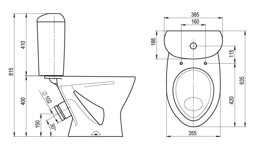 | Метод установки сливного бачка | Поверх унитаза |