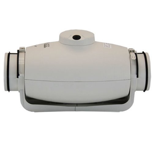 Корпус вентилятора двойной, между внешним и внутренним корпусом проложен слой звукопоглощающего материала. Звуковые волны от крыльчатки и электродвигателя проходят сквозь внутренний перфорированный корпус и, под определенным углом, направляются на слой шумопоглощающего материла, где гасятся практически на сто процентов. Использование резиновых уплотнителей на патрубках вентилятора позволяет исключить передачу вибраций от вентилятора к воздуховодам.