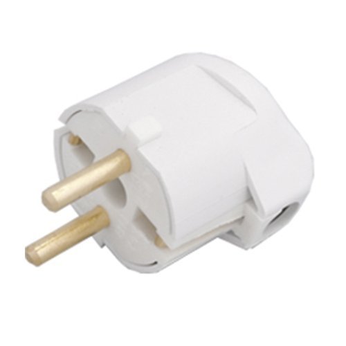 Конструктивно разборная электрическая угловая вилка В16-242 состоит из двух токоведущих контактов и корпуса из ABS-пластика белого цвета.