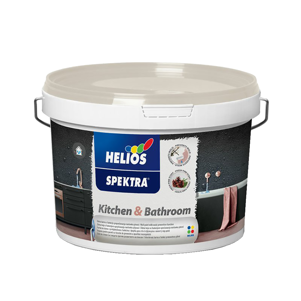 022 268 000Краска водоэмульсионная Spektra Kitchen&Bathroom белый 5л - особенно подходит для таких помещений, как кухни, ванные комнаты, прачечные, сушилки и т. д., в которых повышенное содержание пара может вызвать развитие вредных микроорганизмов.