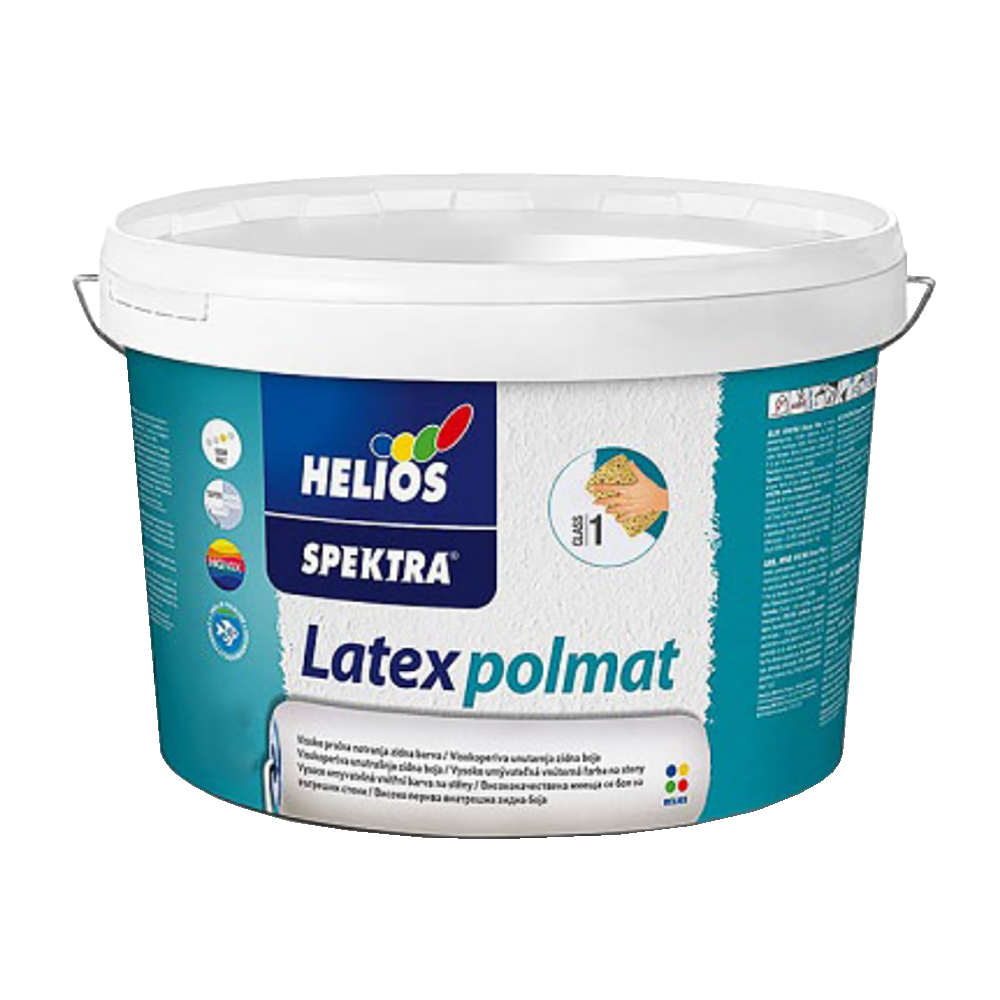 022 268 000Краска водоэмульсионная Spektra Latex Polmat белый 10л - высококачественная дисперсионная краска предназначена для защиты и декора интенсивно эксплуатируемых стен в объектах жилого и общественного назначения. Особо рекомендуется для покраски стен в медицинских учреждениях, детских садах и школах. Покрытие отличается грязеотталкиваемостью и легкой очисткой раствором воды с моющим средством. Покрытие стойкое к мокрому истиранию по EN 13300. Имеется возможность применения декоративных техник нанесения.