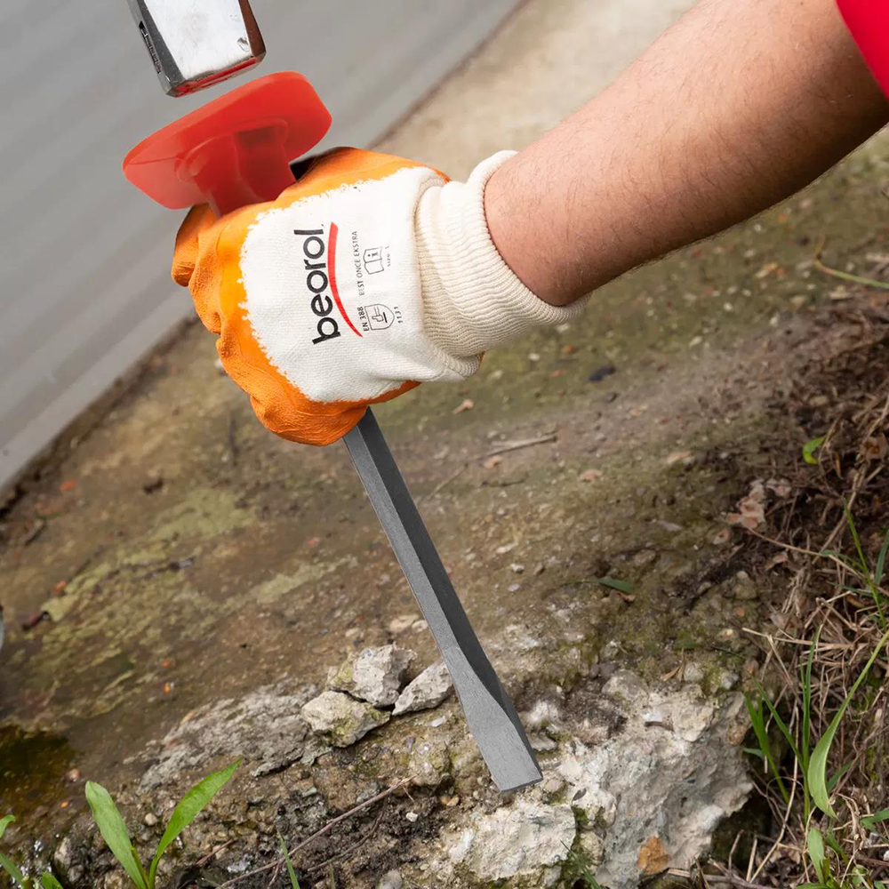 Зубило предназначены для ручного долбления бетона и кирпича. Материал инструмента усилен, что обеспечивает длительный срок службы. Рукоятка из прочного пластика, в частности, ее эргономичная форма, изготовлена таким образом, чтобы свести к минимуму вибрацию, отдающую в руку.